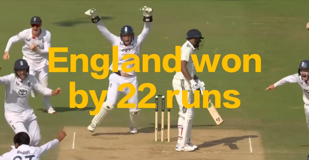 अब अंतिम उम्मीद रविंद्र जडेजा और मोहम्मद सिराज की जोड़ी पर थी। लेकिन इंग्लैंड ने आखिरी विकेट भी जल्द चटका लिया और भारत को 22 रनों से शिकस्त दी।